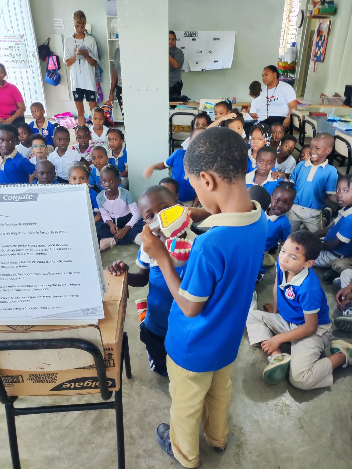 Durante el periodo, además de estas charlas, se hizo la entrega de 1,872 kits de salud bucal, que incluían crema y cepillo dental, así como brochures formativos, todos donados por Colgate Palmolive.