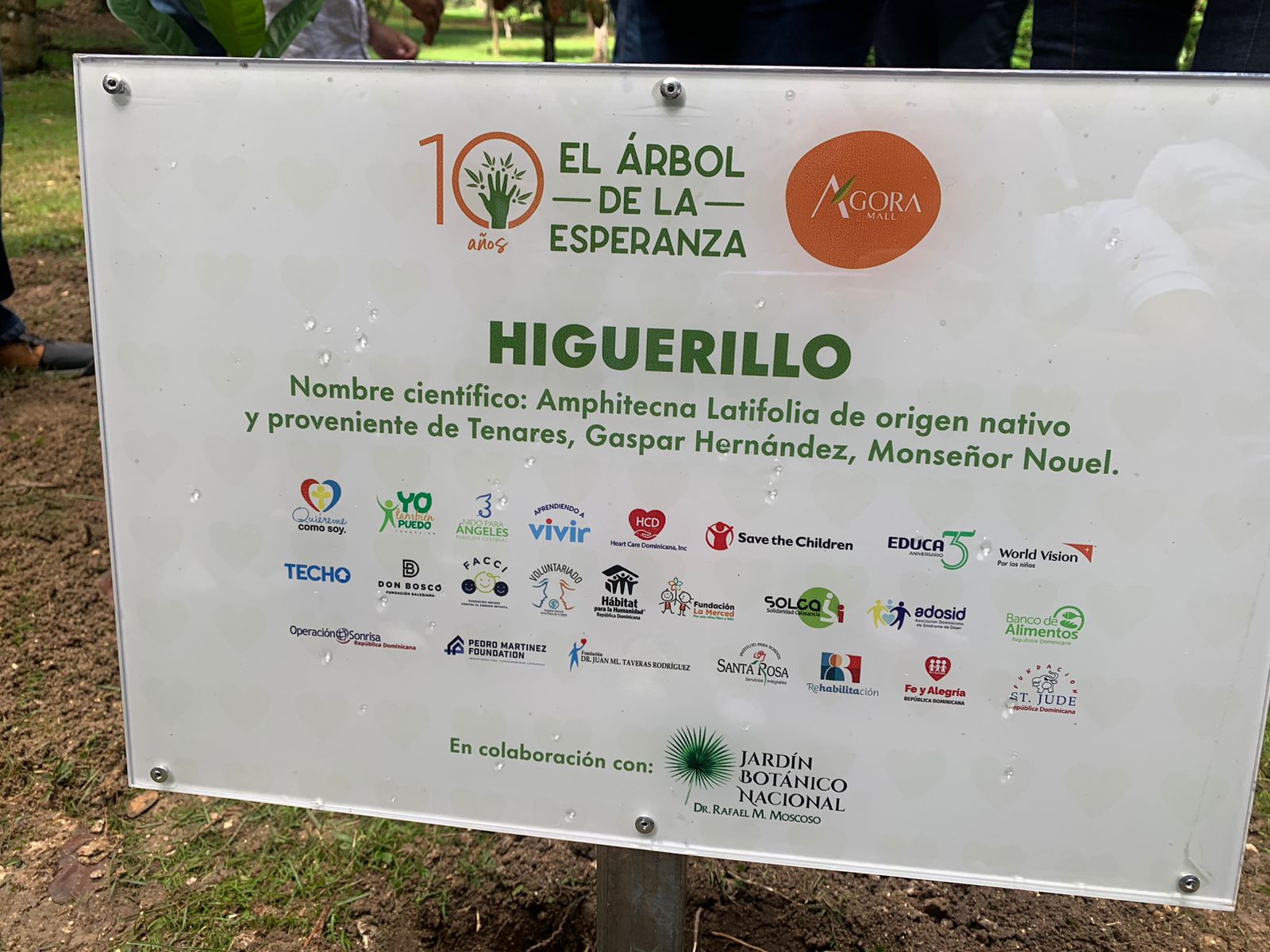 En conmemoración del Día Internacional de la Solidaridad, Ágora Mall junto a 24 fundaciones realizaron una siembra simbólica en la Laguna de El Palmar en el Jardín Botánico Nacional, plantando un ejemplar de la especie Amphitecna latifolia, mejor conocida como Higuerillo, planta en peligro de extinción utilizada para fabricar instrumentos musicales como las güiras o famosas churucas y remedios medicinales.