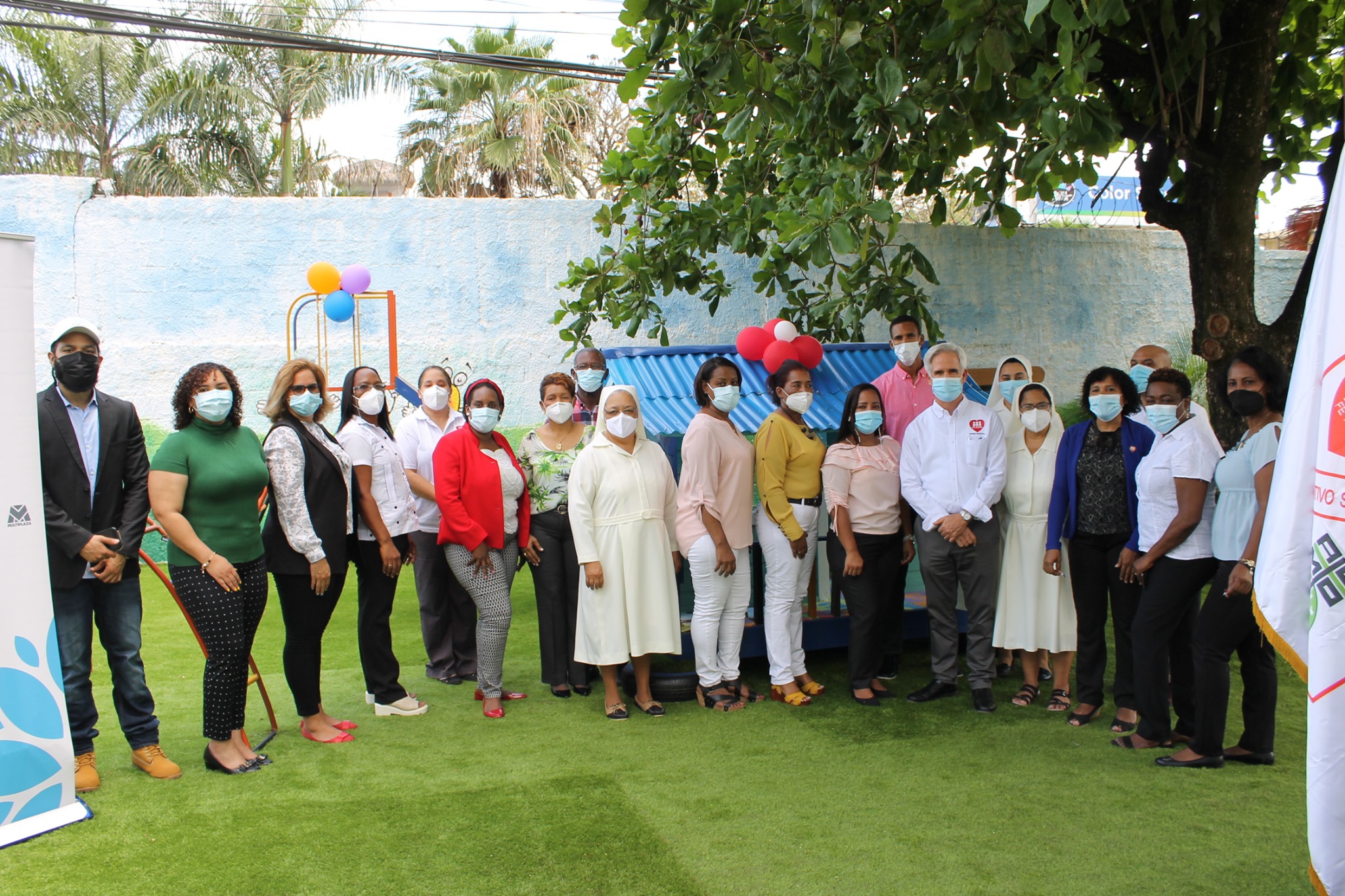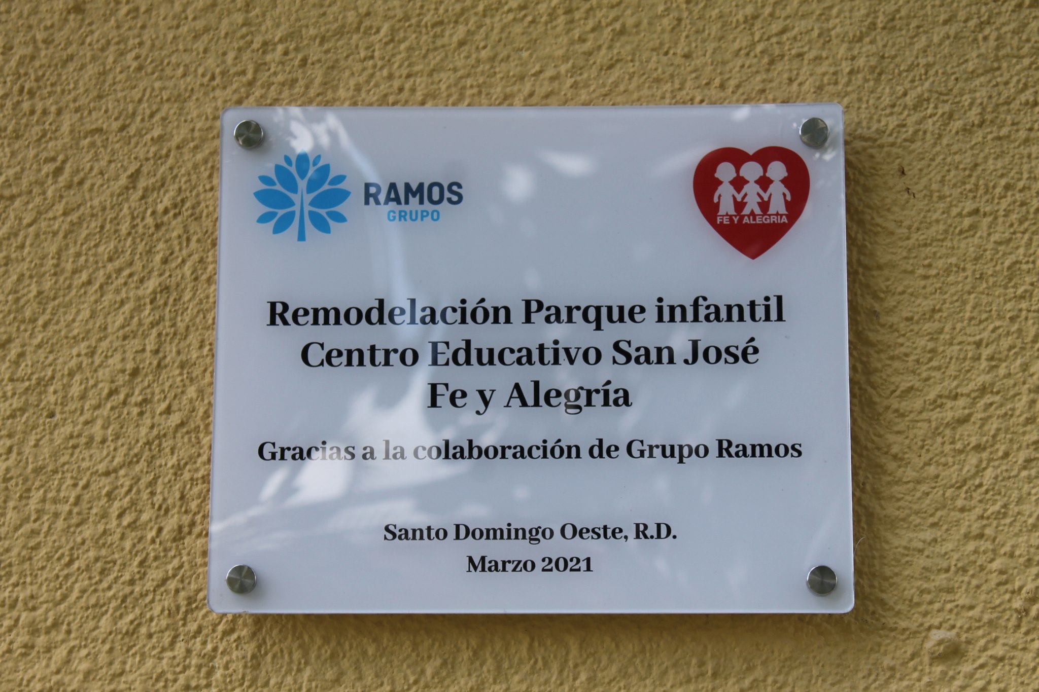 La Asociación Fe y Alegría Dominicana realizó este 12 de mayo la apertura oficial del parque infantil del Centro Educativo San José Fe y Alegría, el cual llenara de alegría y gozo a todos nuestros niños y niñas del sector Pantoja, Santo Domingo Oeste, como espacio de recreación y desarrollo creativo.Este patio infantil forma parte del programa «Aprender Jugando» con el cual se estimula el aprendizaje de los más pequeños. Este espacio ha sido creado, junto a unos 15 patios más, gracias al aporte económico del Grupo Ramos y sus acciones de responsabilidad social corporativa, con enfoque en la educación, quienes han apostado a favor de una educación de calidad con el auspicio de estos espacios de recreación para los/as más pequeños/ñas de nuestra red de centros de Fe y Alegría durante estos 30 años de gestión de la Asociación.
